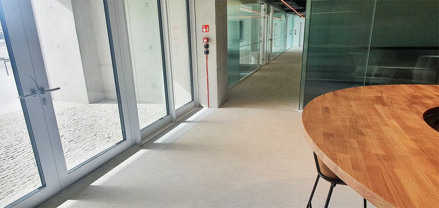 Новостроенное офисное здание LPP Fashion Lab своим стилем навязывает к промышленному характеру района Гданьска, в котором оно располагается. В таком интерьере используются внутрипольные конвекторы VK15, которые являются идеальными для этой инвестиции..